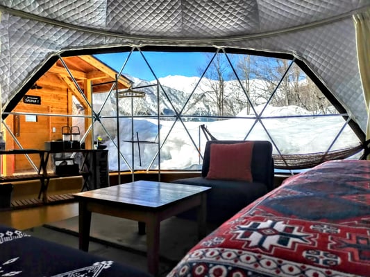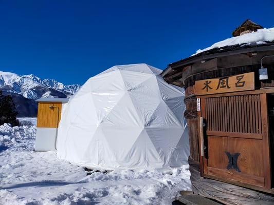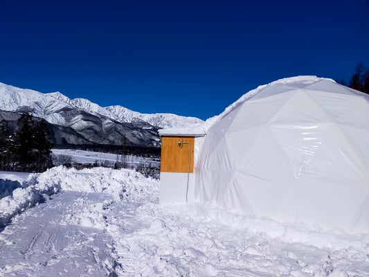 以前から人気のグランピングエリアが、雪でもお過ごしいただけるドームテントに2024年にリニューアル♪