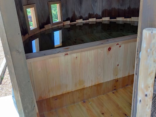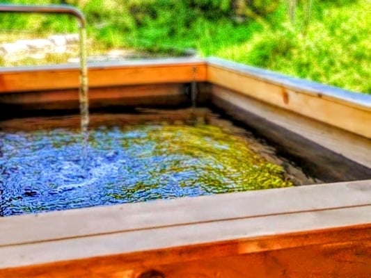 水風呂は古い酒樽を改造しためずらしい水風呂となります。