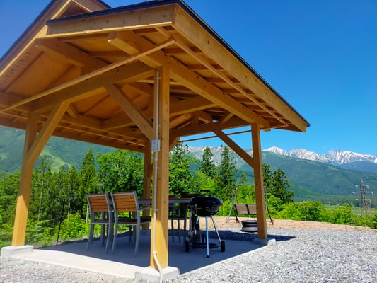 食材をお持ちいただければ、各棟専用の東屋(照明付)でバーベキューをお楽しみいただけます。